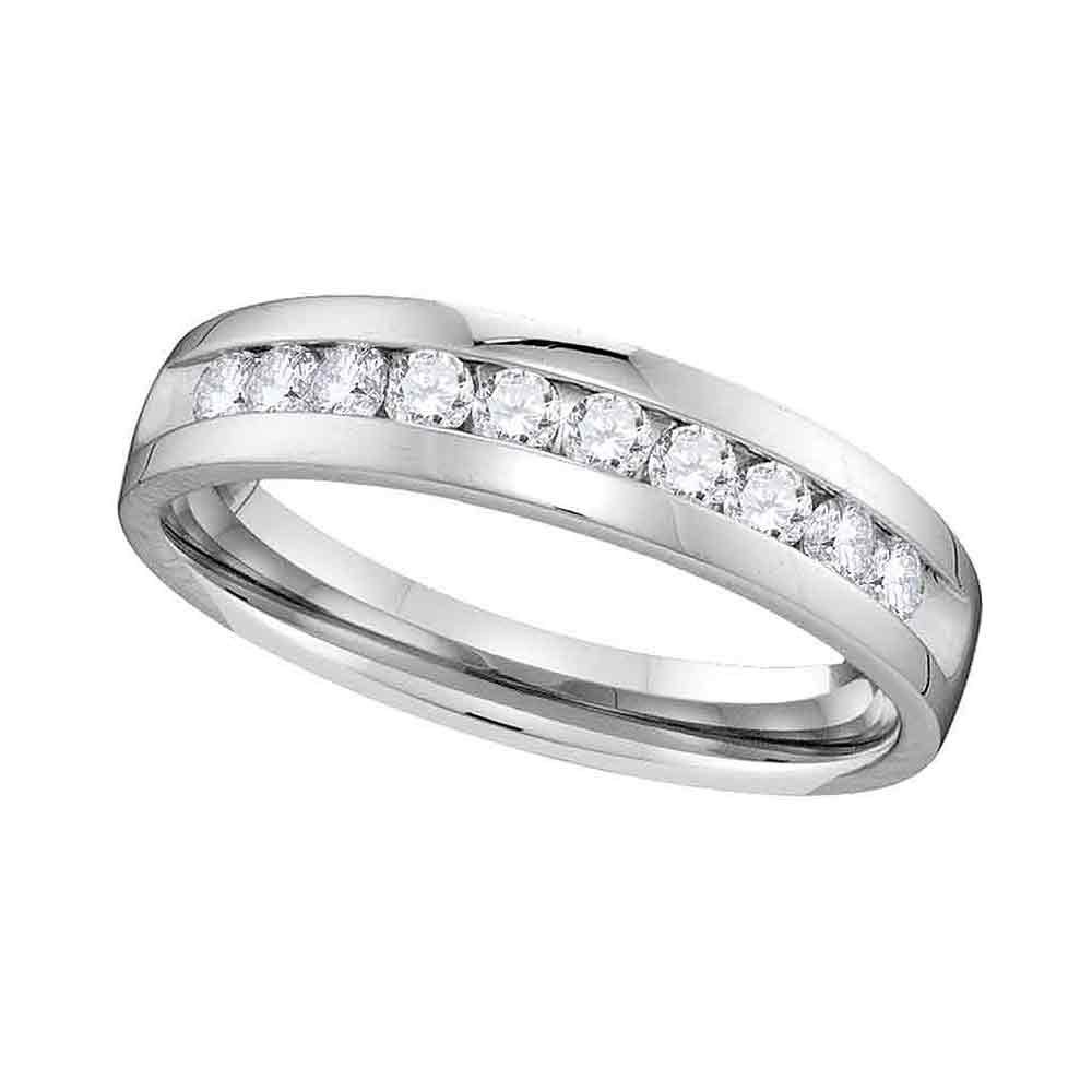 REF-81H7R - 1/2 CTW Mens Round Diamond Wedding Single Row Band Ring 14kt White Gold - REF-81H7R