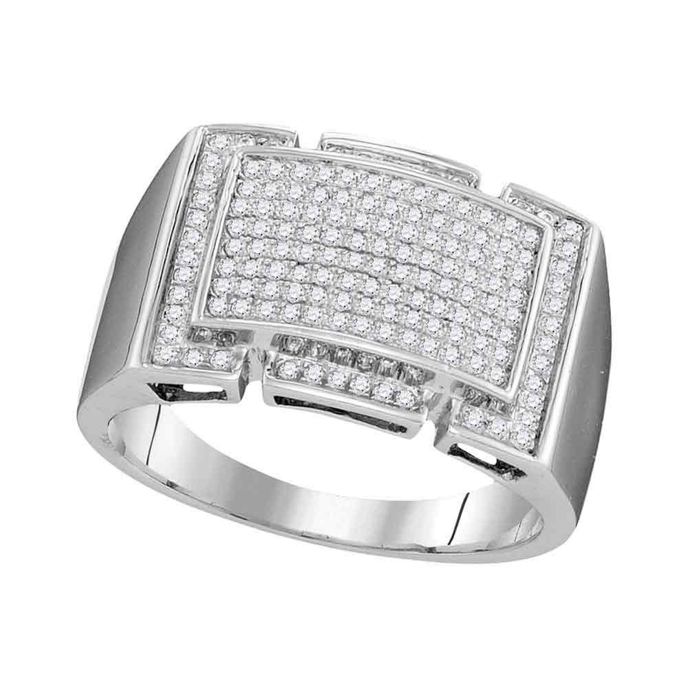 10kt White Gold Mens Round Pave-set Diamond Rectangle Cluster Ring 1/2 Cttw