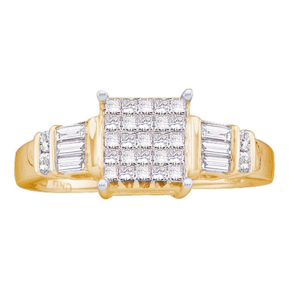 REF-54H5R - 1/2 CTW Princess Diamond Cluster Bridal Wedding Engagement Ring 14kt Yellow Gold - REF-54H5R