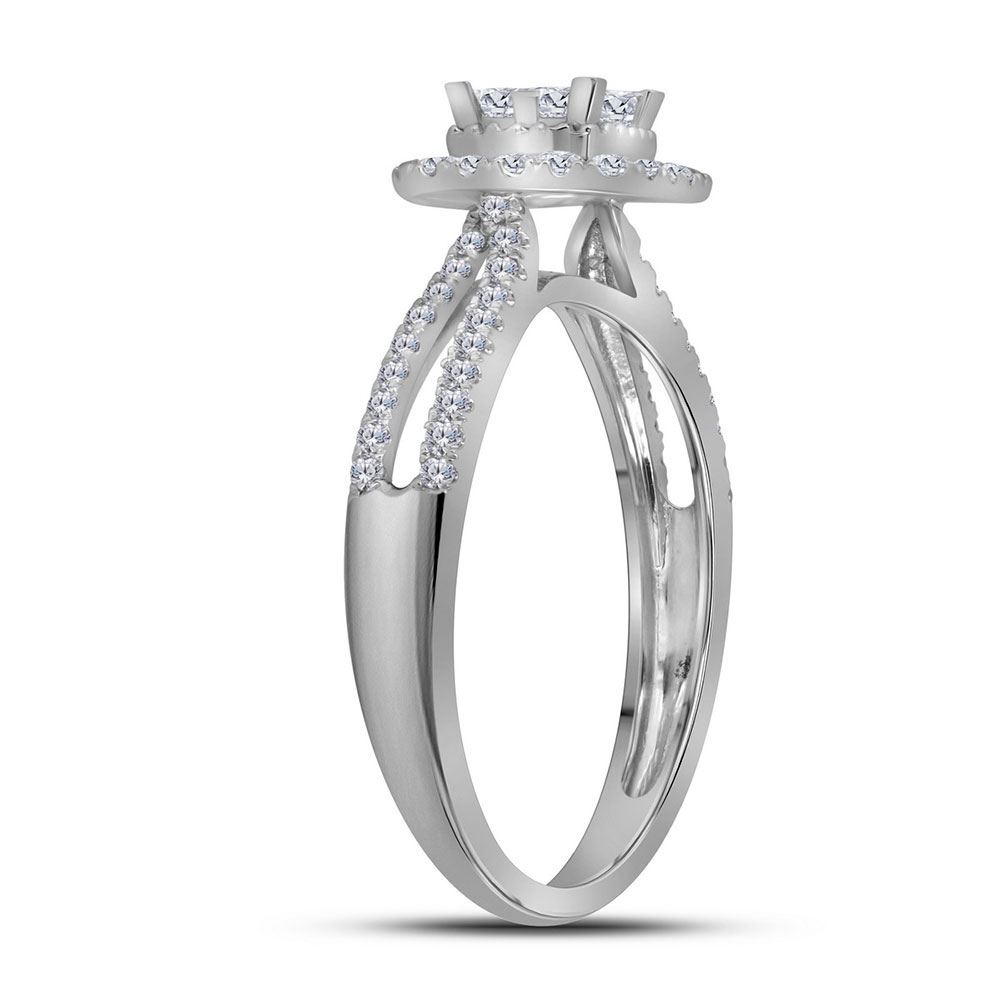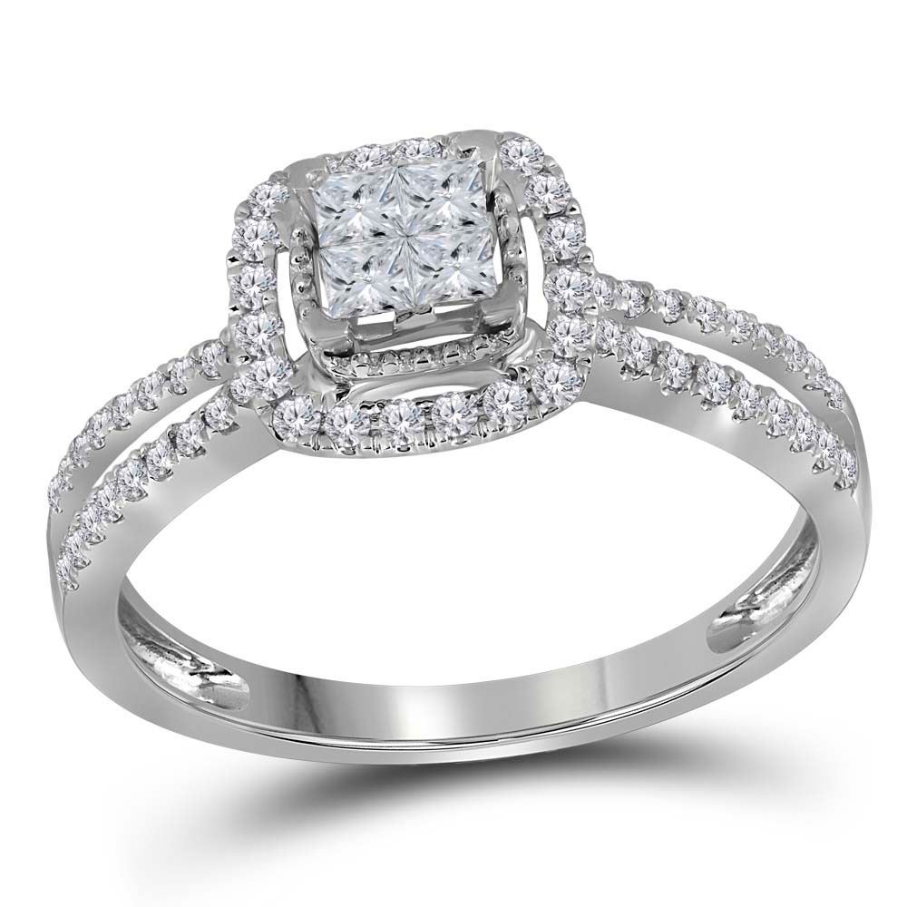 14kt White Gold Womens Princess Diamond Cluster Fashion Ring 1/2 Cttw
