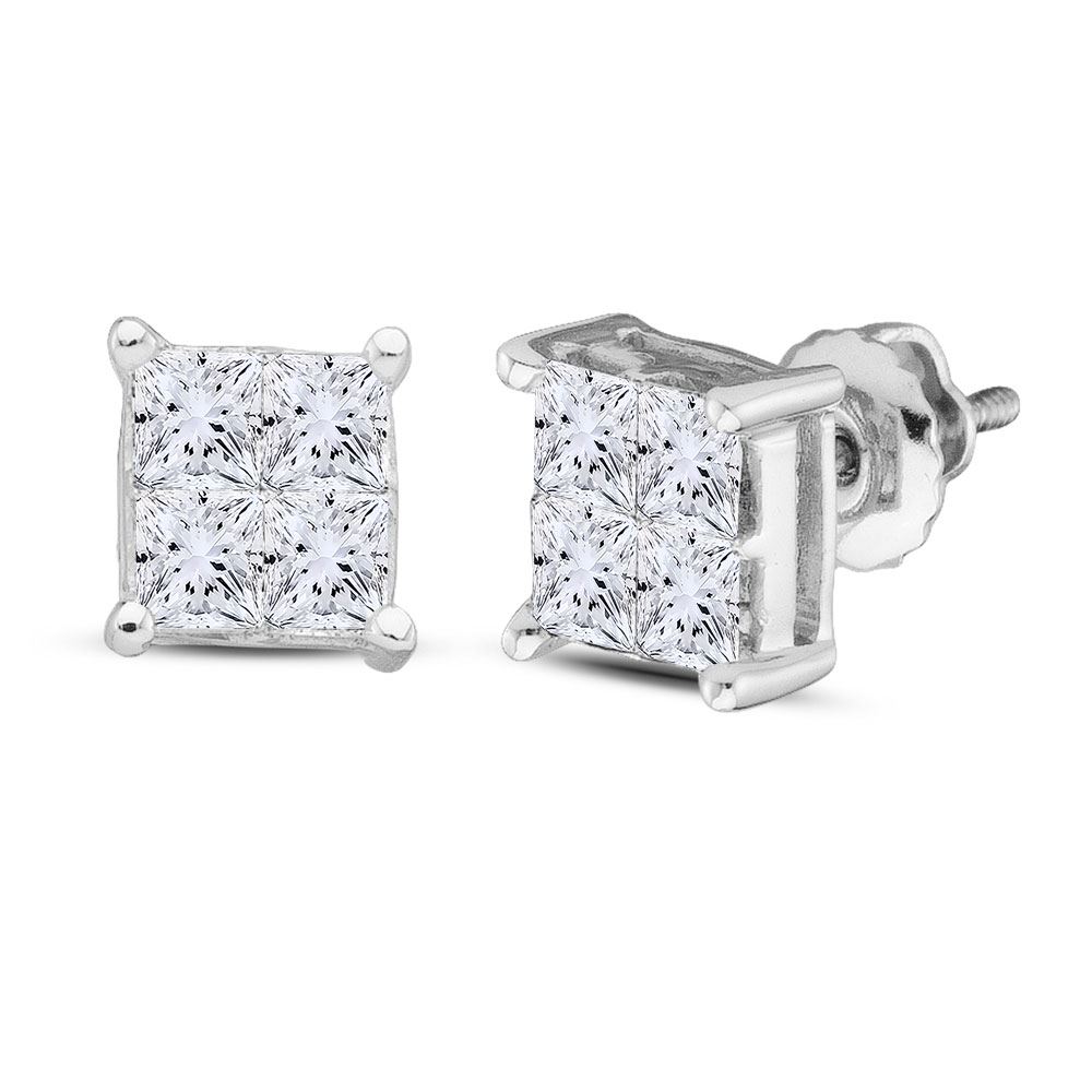 REF-39M3A ---- 1/2 CTW Princess Diamond Square Earrings 14kt White Gold