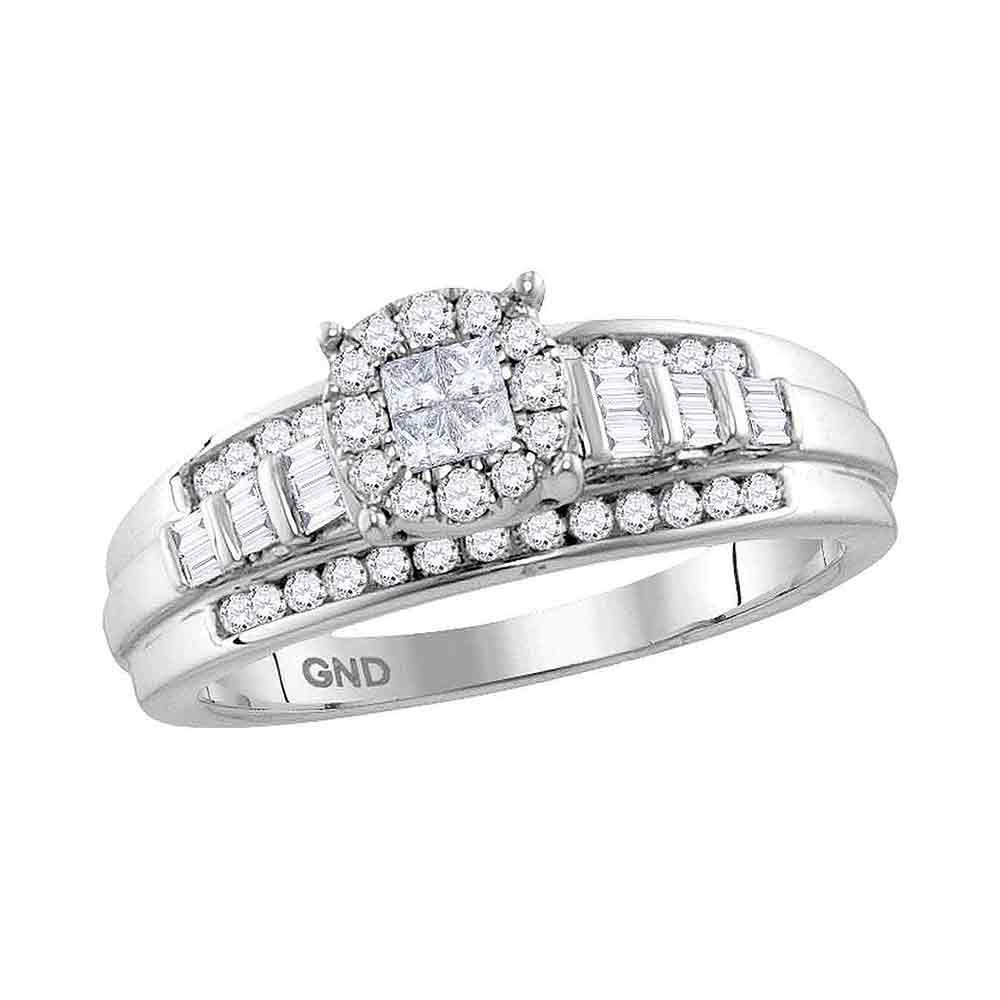 10kt White Gold Womens Princess Round Diamond Cluster Bridal Wedding Engagement Ring 1/2 Cttw