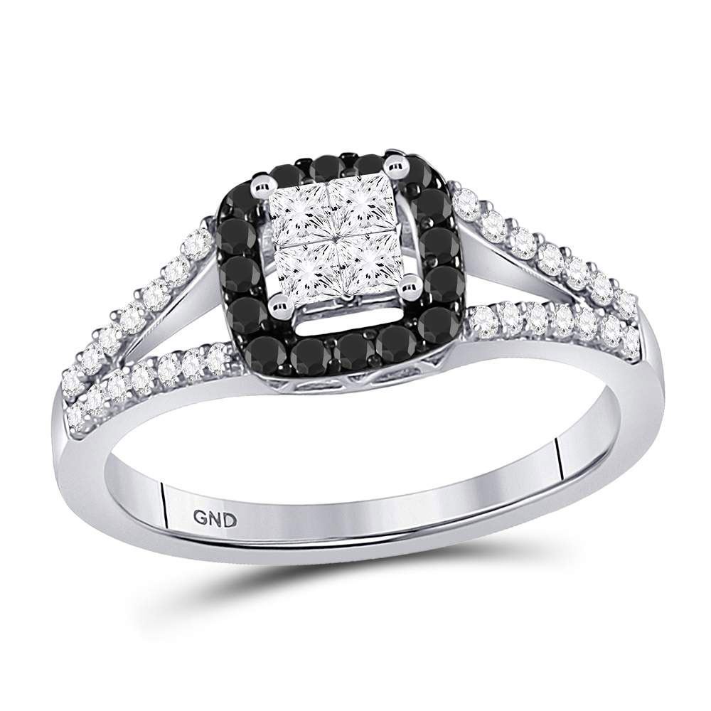 10kt White Gold Womens Round Black Color Enhanced Diamond Cluster Ring 1/2 Cttw