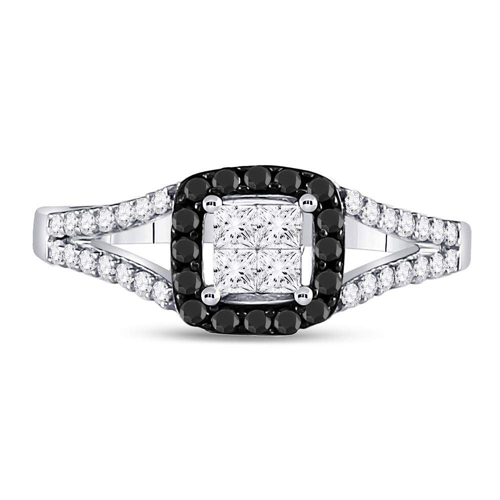 10kt White Gold Womens Round Black Color Enhanced Diamond Cluster Ring 1/2 Cttw