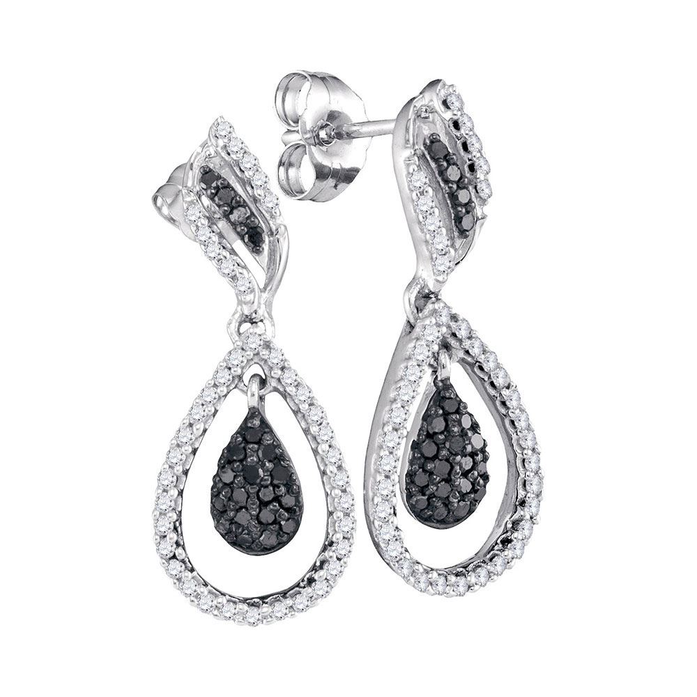 10kt White Gold Womens Round Black Color Enhanced Diamond Teardrop Dangle Earrings 1/2 Cttw
