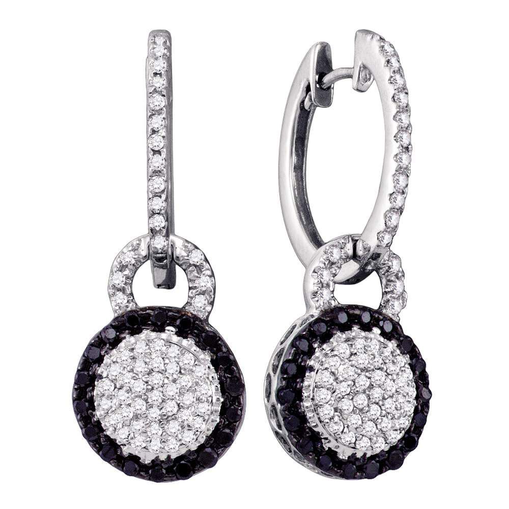 10kt White Gold Womens Round Black Color Enhanced Diamond Framed Cluster Dangle Earrings 1/2 Cttw