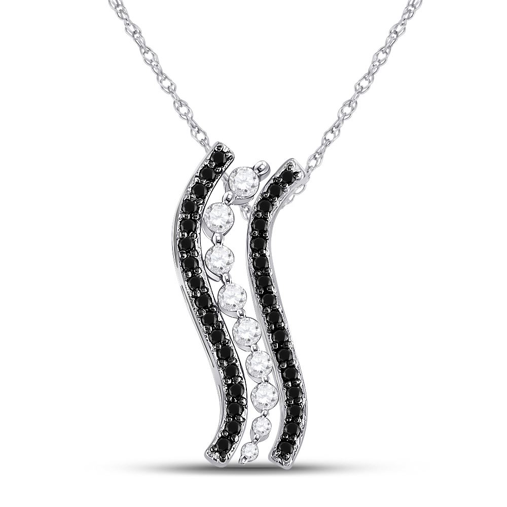 10kt White Gold Womens Round Black Color Enhanced Diamond Graduated Journey Pendant 1/2 Cttw
