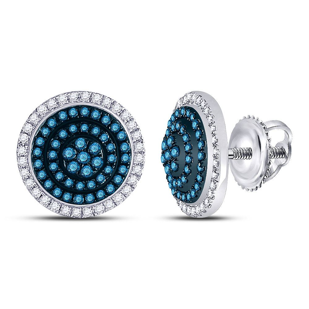 10kt White Gold Womens Round Blue Color Enhanced Diamond Concentric Cluster Earrings 1/2 Cttw