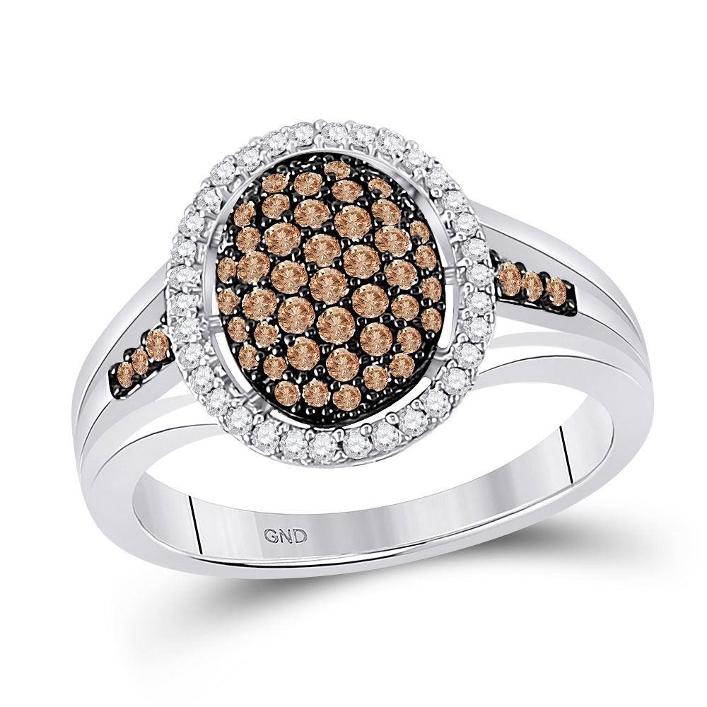 10kt White Gold Womens Round Brown Diamond Oval Cluster Ring 1/2 Cttw