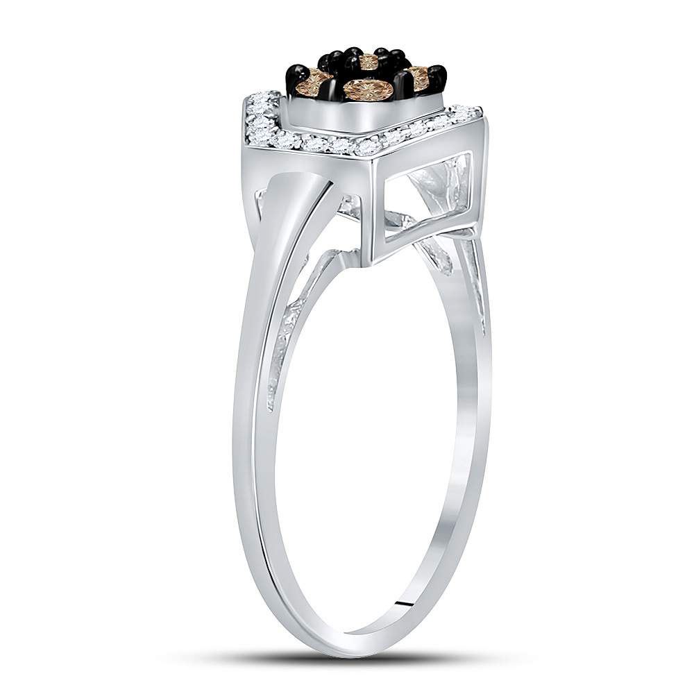 10kt White Gold Womens Round Brown Diamond Polygon Cluster Ring 1/2 Cttw