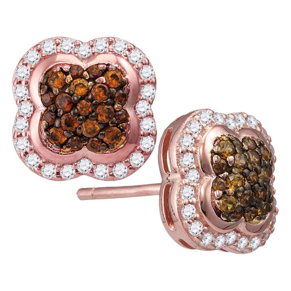 REF-30A3N ---- 1/2 CTW Round Brown Diamond Quaterfoil Cluster Stud Earrings 10kt Rose Gold
