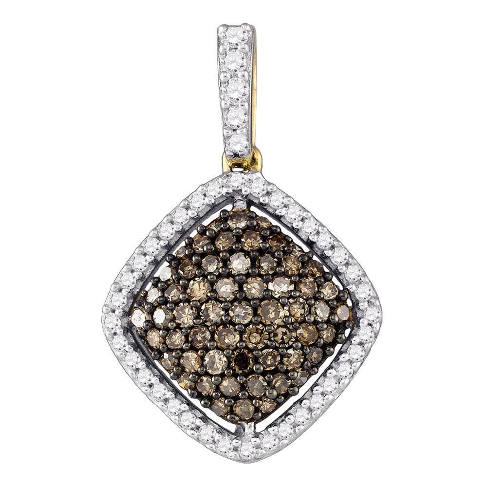 10kt Yellow Gold Womens Round Brown Diamond Square Cluster Pendant 1/2 Cttw