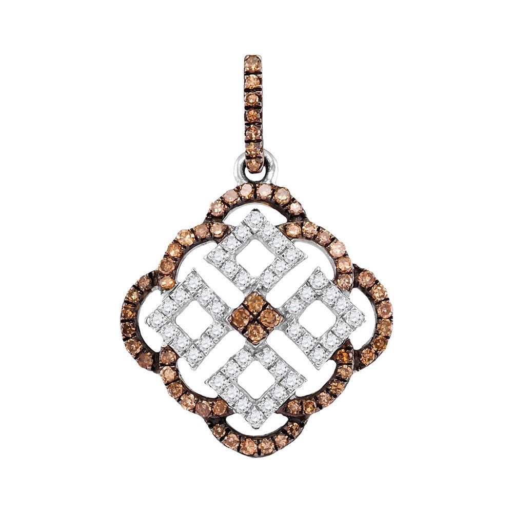 10kt White Gold Womens Round Brown Diamond Square Pendant 1/2 Cttw