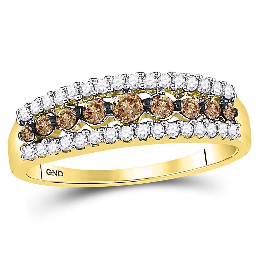 10kt Yellow Gold Womens Round Brown Diamond Triple Row Band Ring 1/2 Cttw