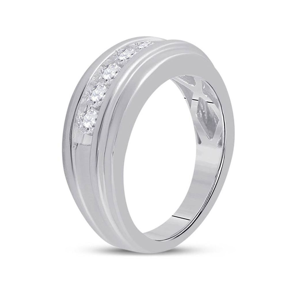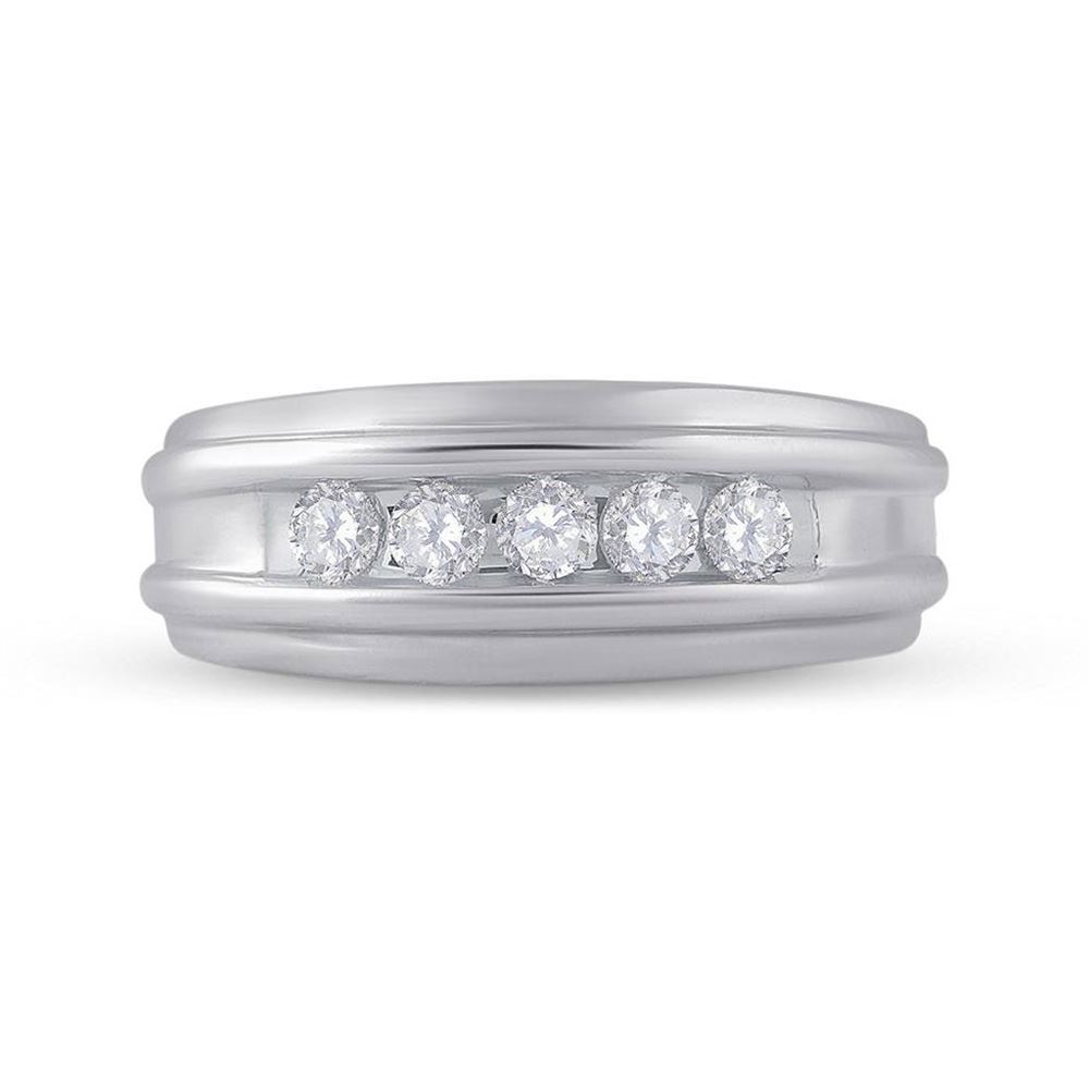 14k White Gold Round Channel-set Diamond Mens Wedding Band 1/2 Cttw