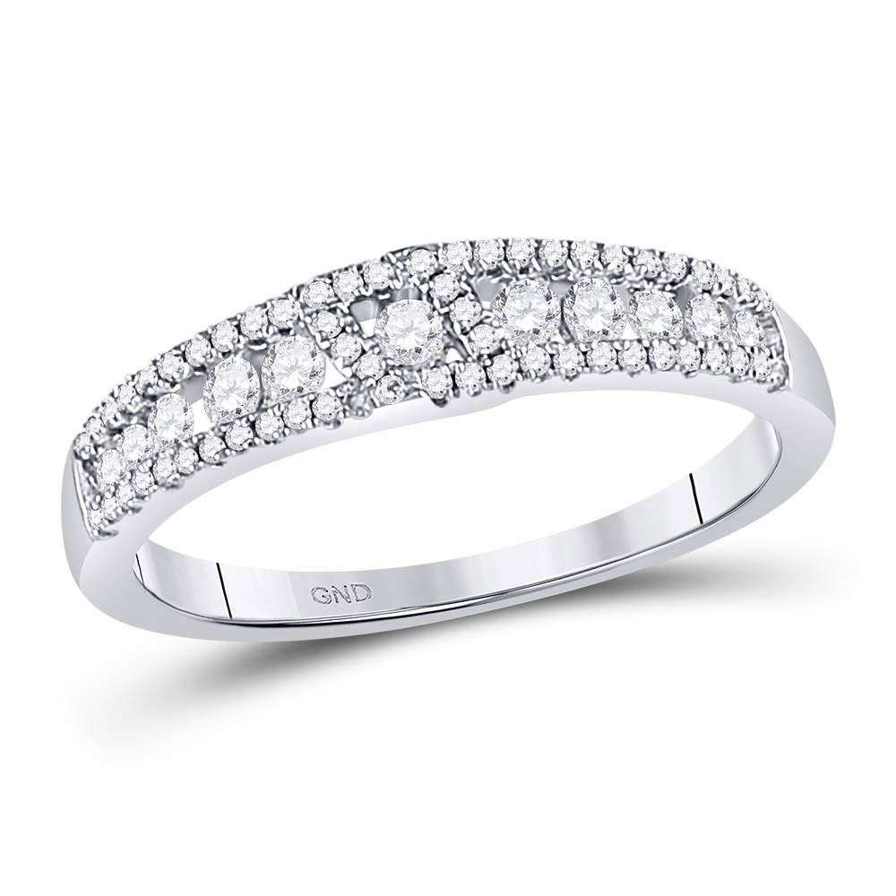 14kt White Gold Womens Round Diamond Anniversary Band Ring 1/2 Cttw