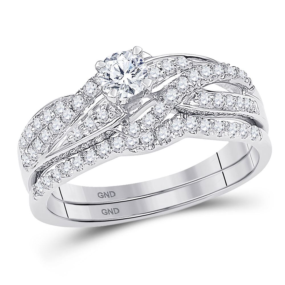 10kt White Gold Womens Round Diamond Bridal Wedding Engagement Ring Band Set 1/2 Cttw