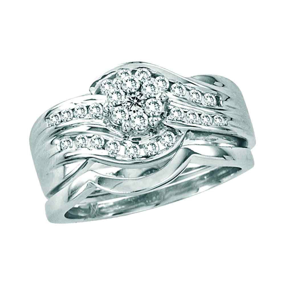 14kt White Gold Womens Round Diamond Bridal Wedding Engagement Ring Band Set 1/2 Cttw