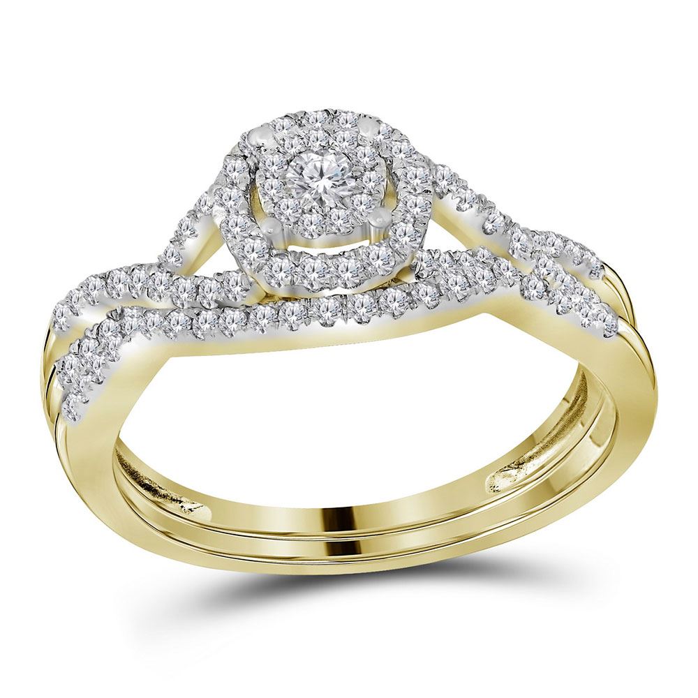 14kt Yellow Gold Womens Round Diamond Bridal Wedding Engagement Ring Band Set 1/2 Cttw