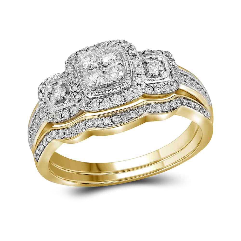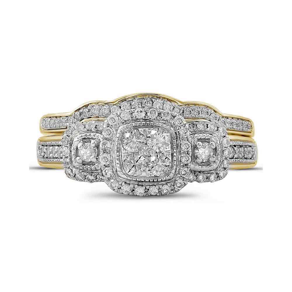 14kt Yellow Gold Womens Round Diamond Bridal Wedding Engagement Ring Band Set 1/2 Cttw