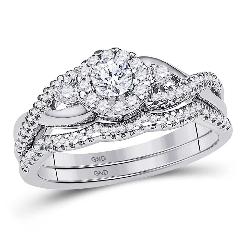 REF-58M2F - 1/2 CTW Round Diamond Bridal Wedding Ring 10k White Gold - REF-58M2F