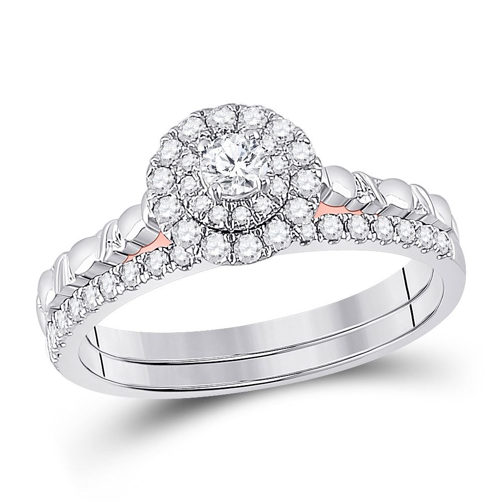 REF-51T2V - 1/2 CTW Round Diamond Bridal Wedding Ring 10kt Two-tone Gold - REF-51T2V