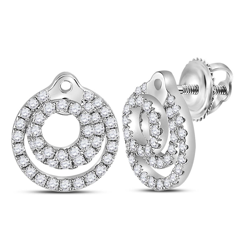 14kt White Gold Womens Round Diamond Circular Fashion Earrings 1/2 Cttw