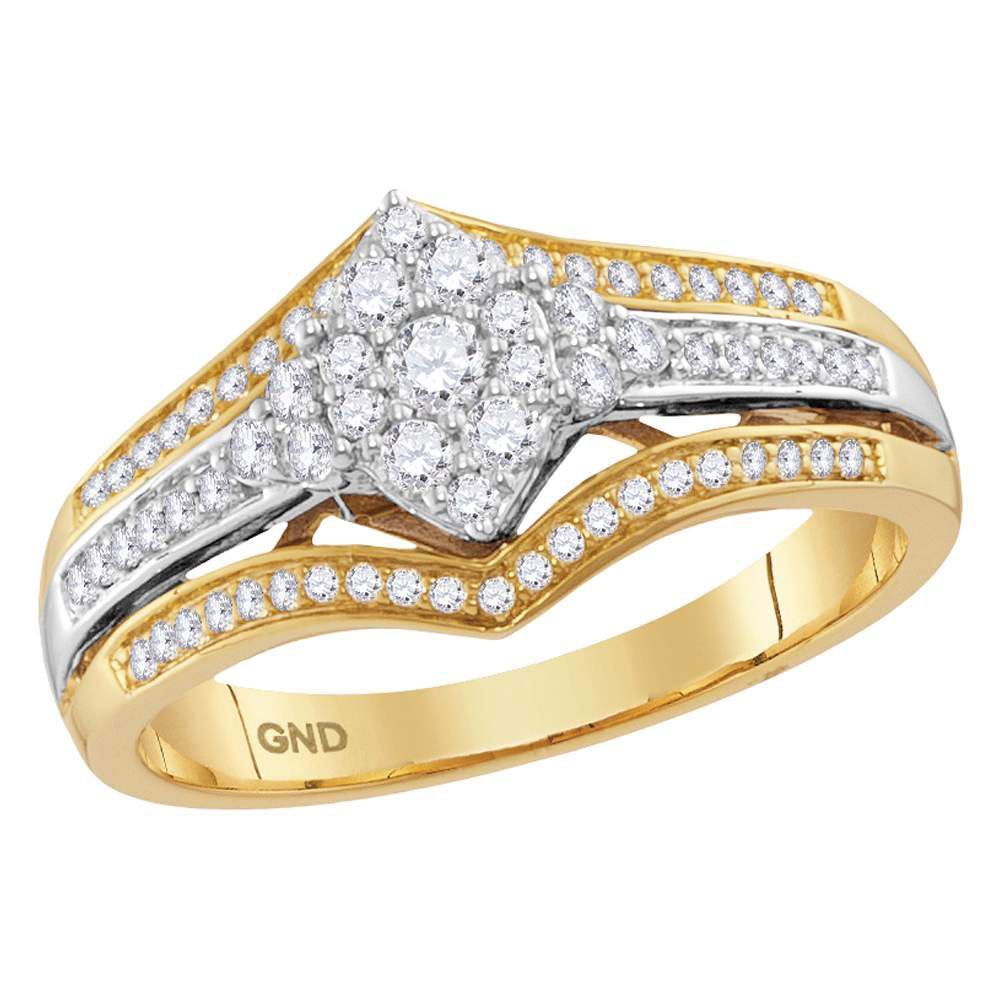 REF-51M2F - 1/2 CTW Round Diamond Cluster Bridal Wedding Engagement Ring 10kt Two-tone Gold - REF-51M2F