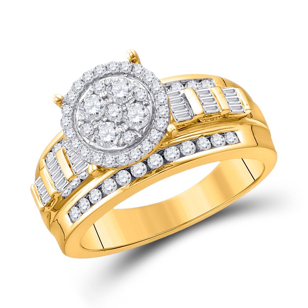 REF-42W8H - 1/2 CTW Round Diamond Cluster Bridal Wedding Engagement Ring 10kt Yellow Gold - REF-42W8H
