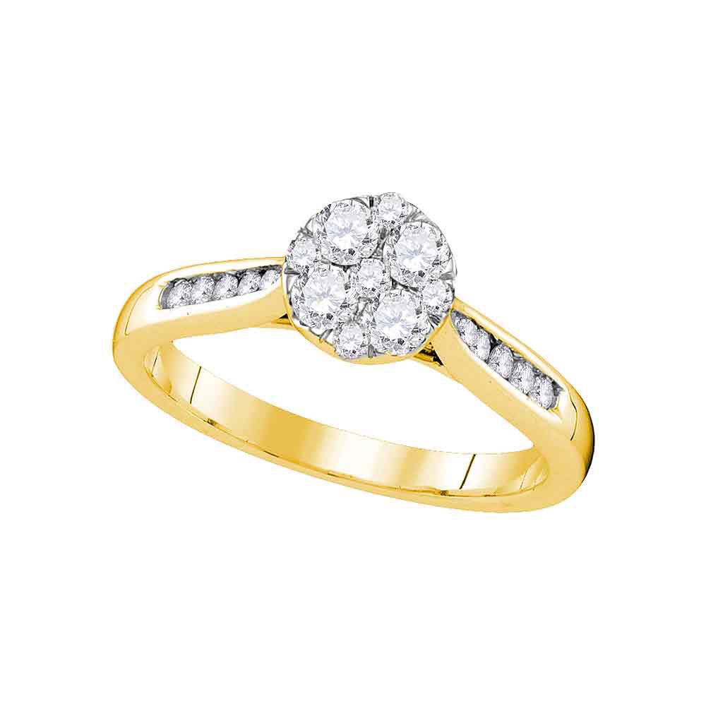 14kt Yellow Gold Womens Round Diamond Cluster Bridal Wedding Engagement Ring 1/2 Cttw