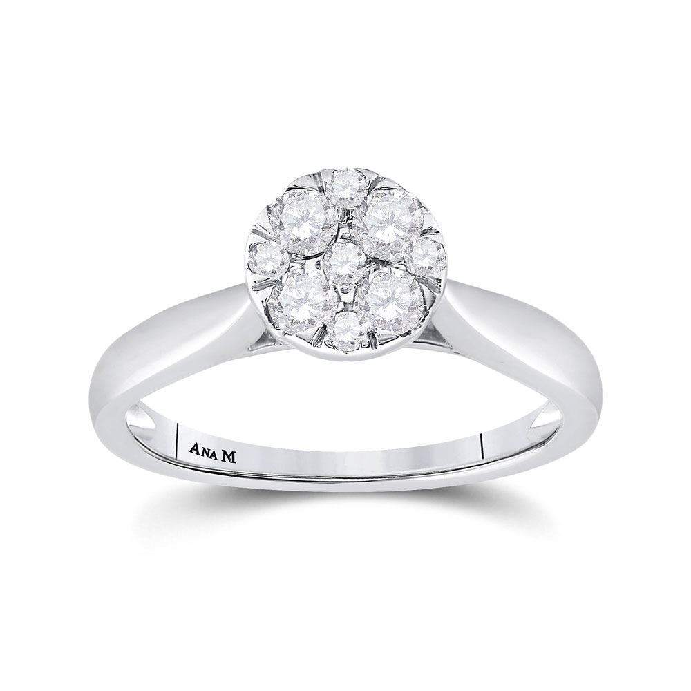 REF-57F3M ---- 1/2 CTW Round Diamond Cluster Ring 14kt White Gold