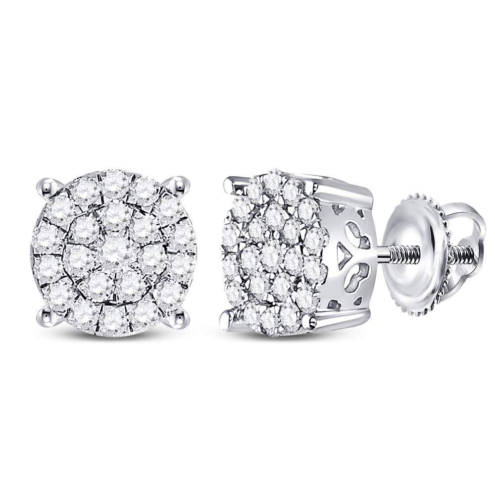 REF-30K3R ---- 1/2 CTW Round Diamond Concentric Circle Cluster Earrings 10kt White Gold