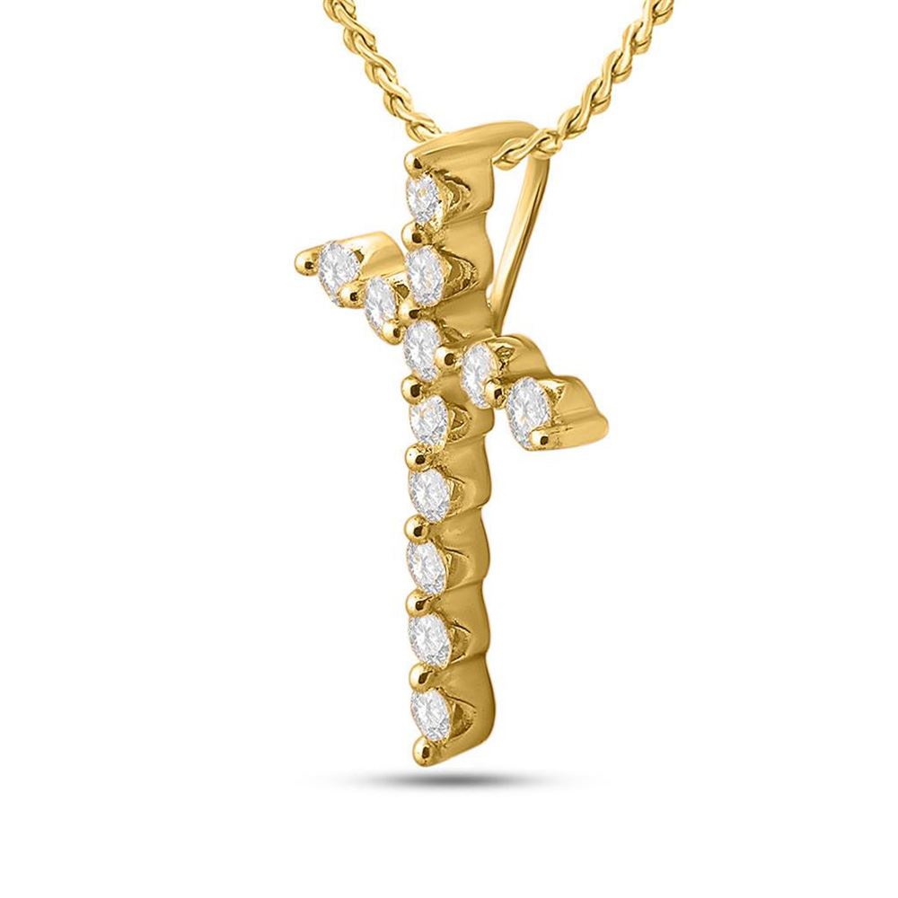 14kt Yellow Gold Womens Round Pave-set Diamond Cross Pendant 1/2 Cttw