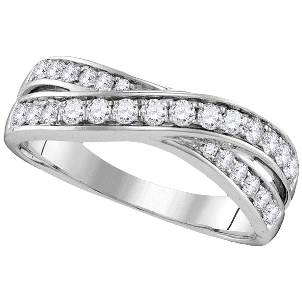 14kt White Gold Womens Round Diamond Crossover Band Ring 1/2 Cttw