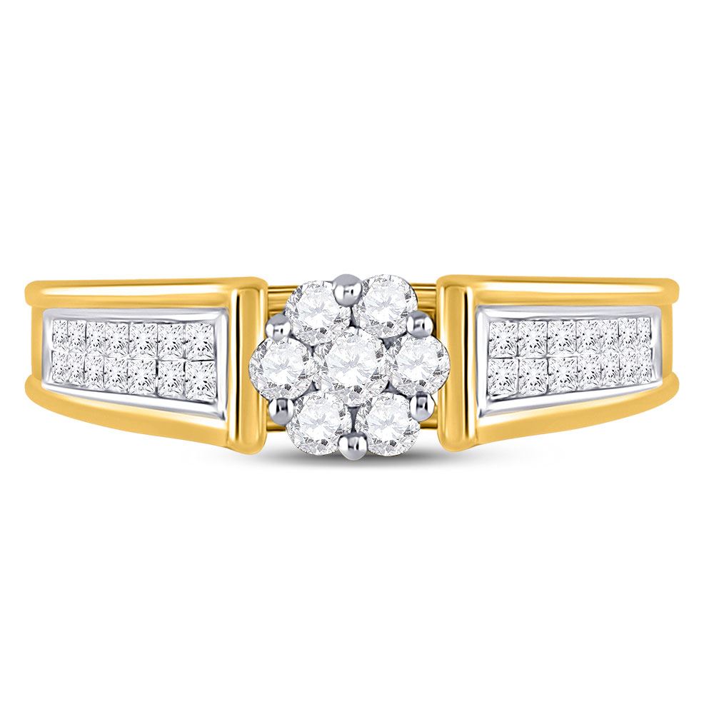 REF-54R3H ---- 1/2 CTW Round Diamond Flower Cluster Ring 14kt Yellow Gold