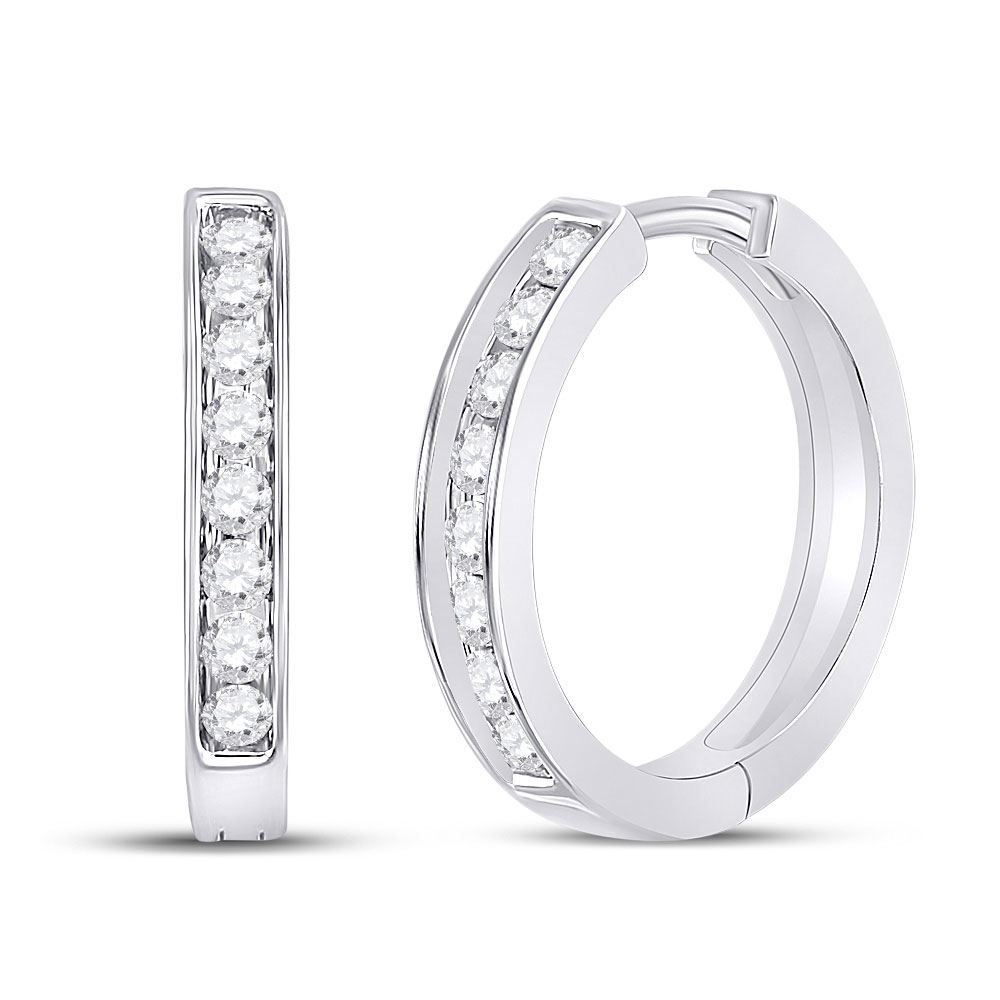 REF-39Y6X ---- 1/2 CTW Round Diamond Hoop Earrings 10kt White Gold