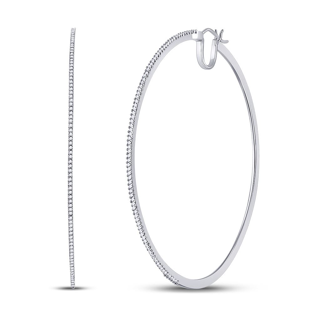 10kt White Gold Womens Round Diamond Large Hoop Earrings 1/2 Cttw