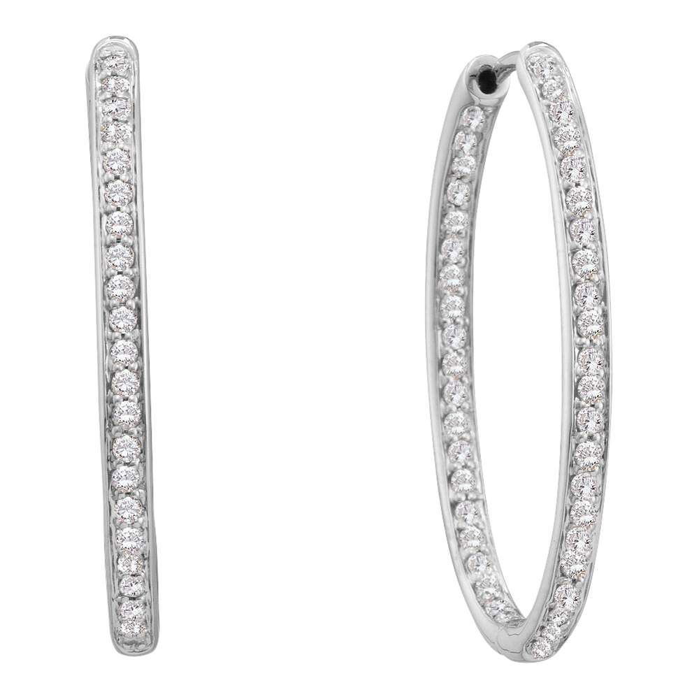 REF-57W5F ---- 1/2 CTW Round Diamond Inside Outside Endless Hoop Earrings 14kt White Gold