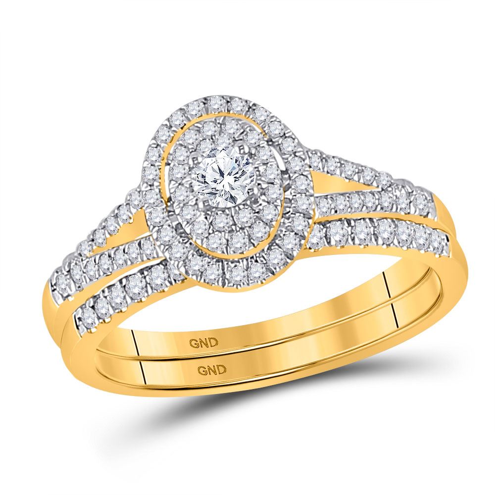 REF-54N5A - 1/2 CTW Round Diamond Oval Bridal Wedding Ring 10kt Yellow Gold - REF-54N5A