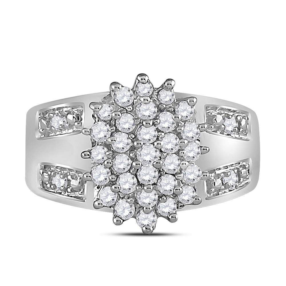 REF-35T9K ---- 1/2 CTW Round Diamond Oval Cluster Ring 14kt White Gold
