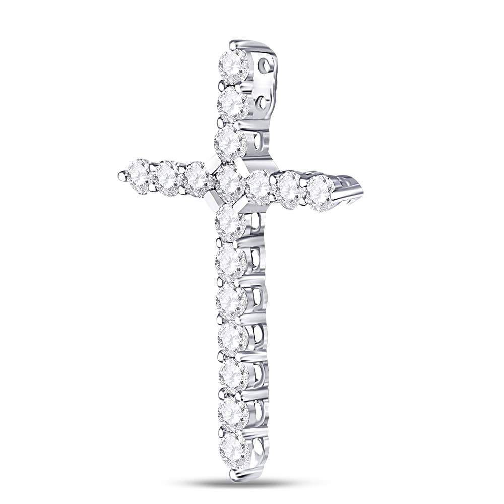 14kt White Gold Womens Round Diamond Roman Cross Pendant 1/2 Cttw