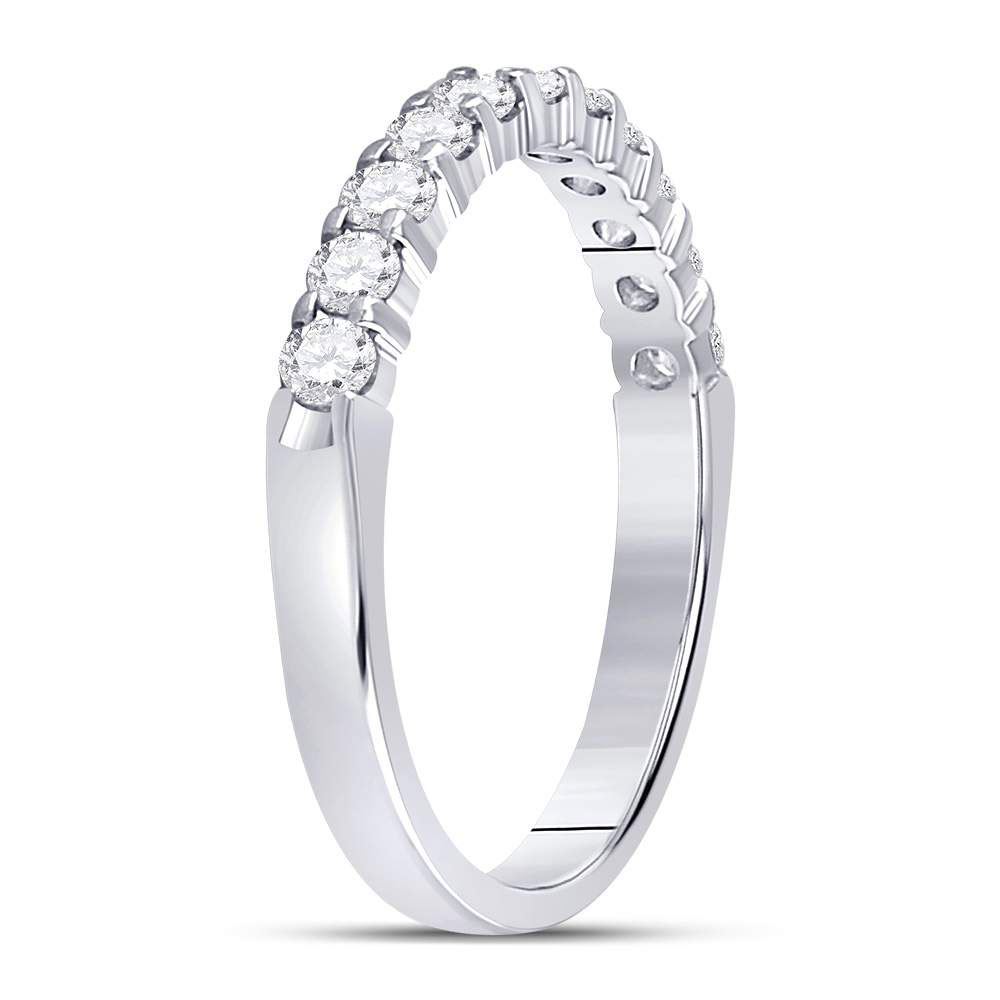 14kt White Gold Womens Round Diamond Single Row Machine-set Wedding Band 1/2 Cttw