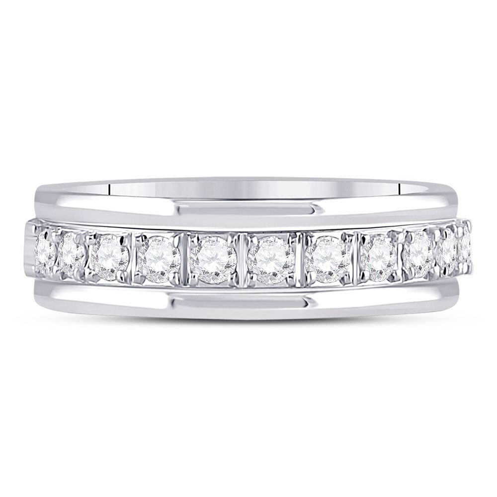 10kt White Gold Womens Round Diamond Single Row Band Ring 1/2 Cttw