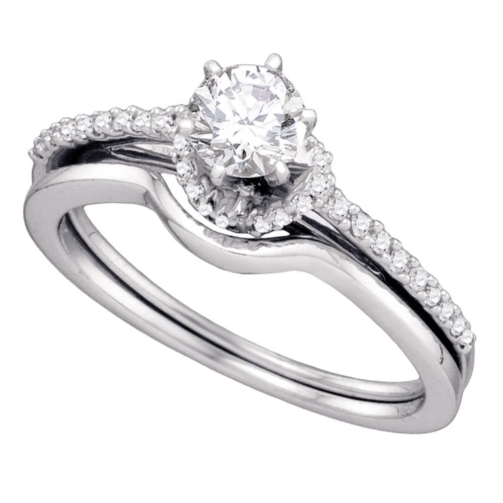 14kt White Gold Womens Round Diamond Slender Bridal Wedding Engagement Ring Band Set 1/2 Cttw