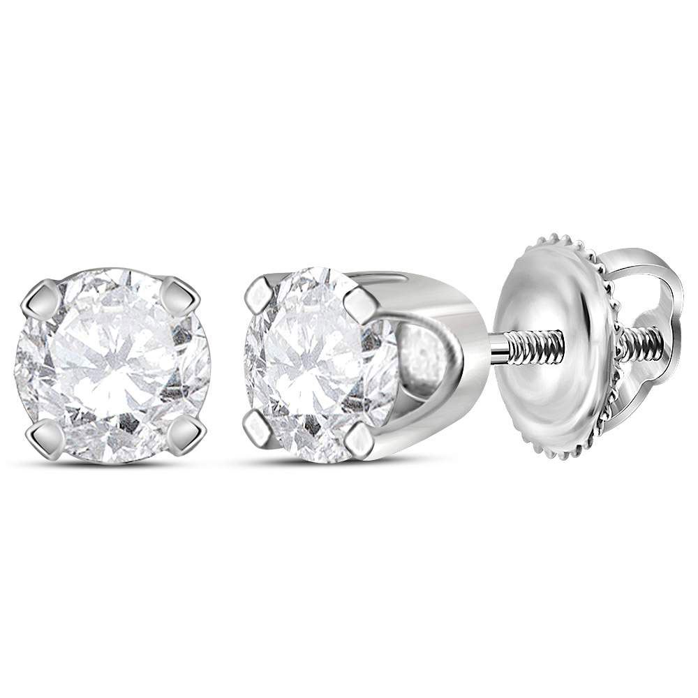 14kt White Gold Unisex Round Diamond Solitaire Stud Earrings 1/2 Cttw