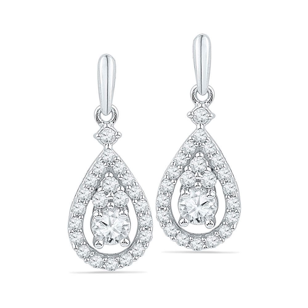 10kt White Gold Womens Round Diamond Solitaire Teardrop Frame Dangle Earrings 1/2 Cttw