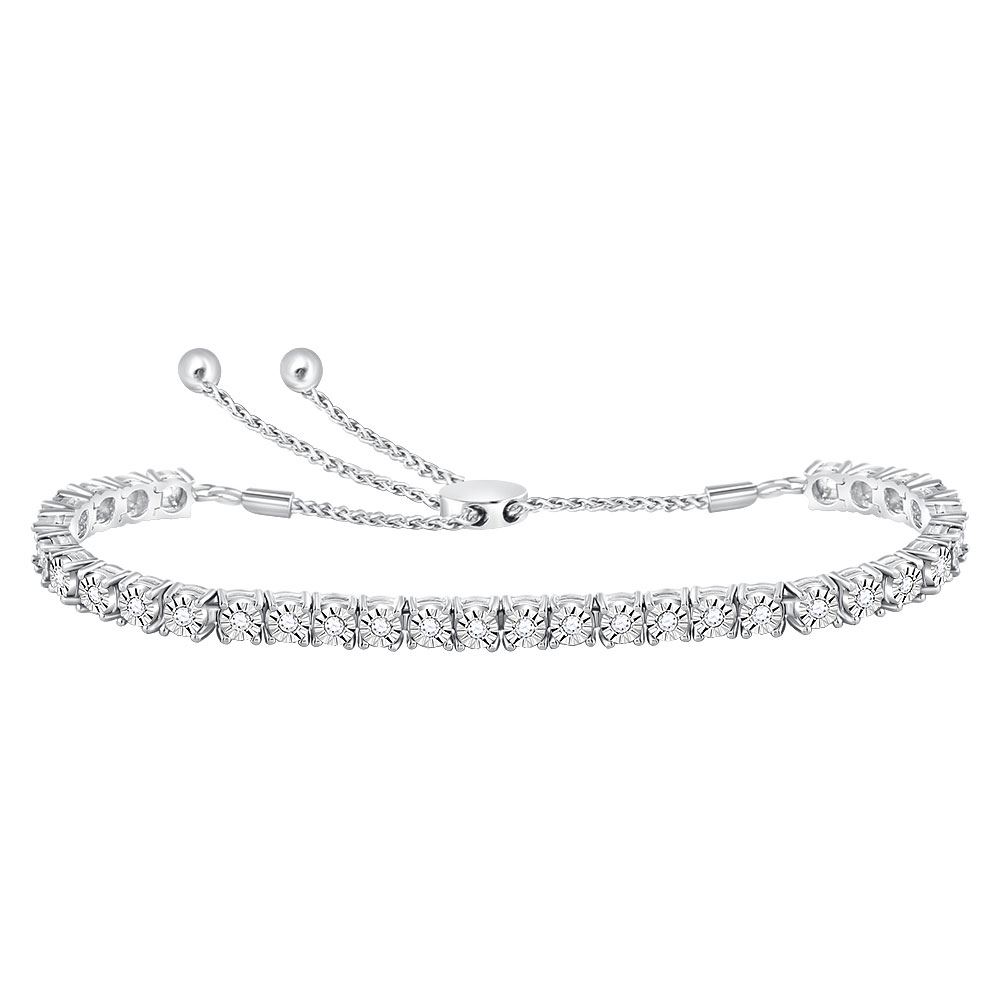 10kt White Gold Womens Round Diamond Studded Bolo Bracelet 1/2 Cttw