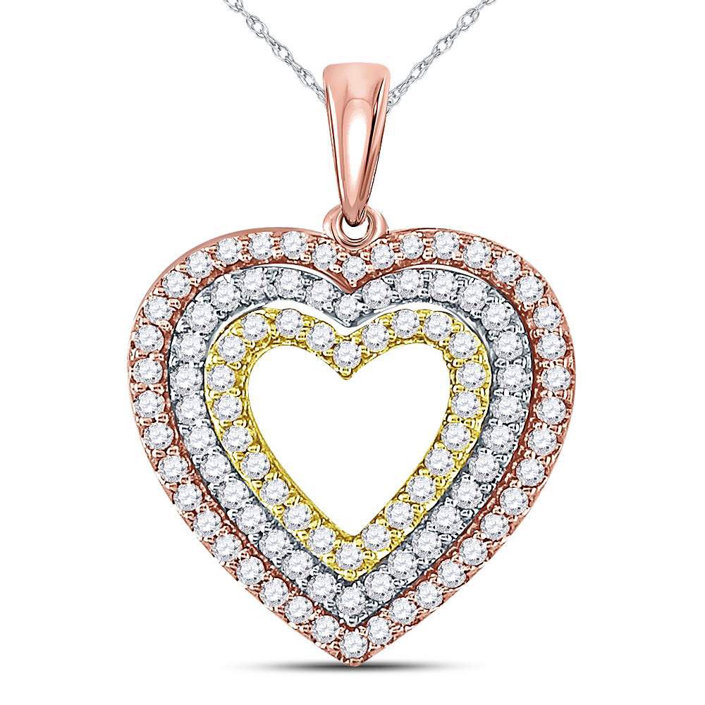 REF-35K9R ---- 1/2 CTW Round Diamond Triple Heart Pendant 10kt Tri-Tone Gold