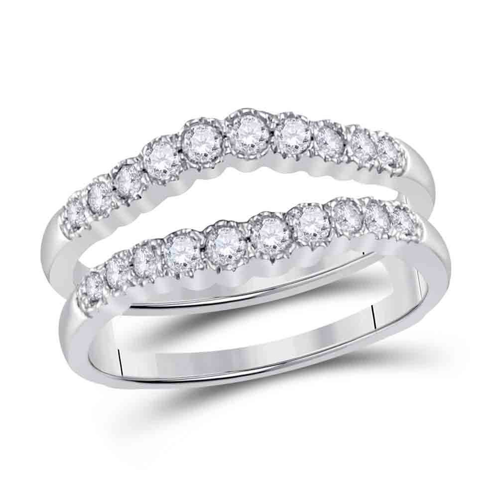14kt White Gold Womens Round Diamond Wrap Ring Guard Enhancer 1/2 Cttw