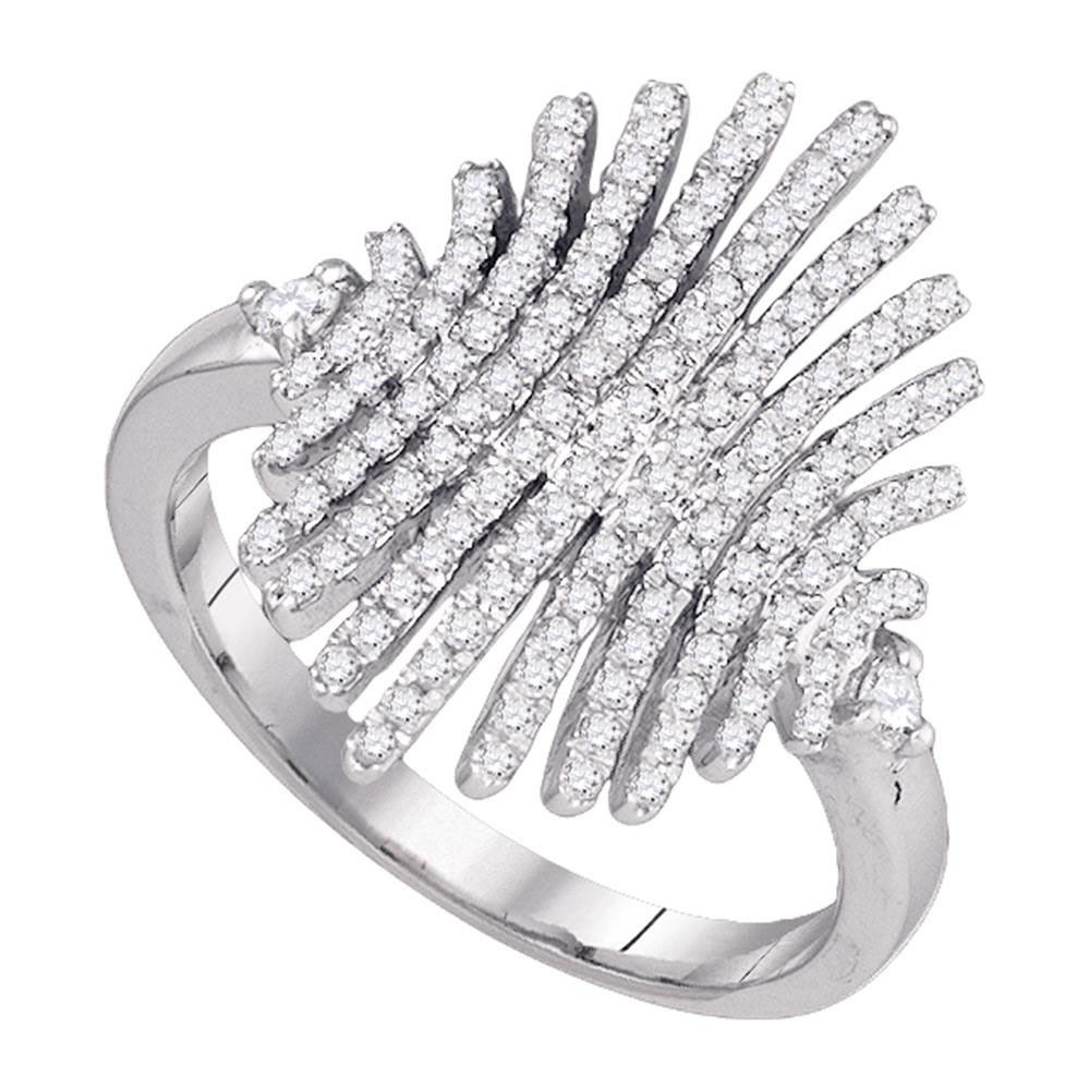 10k White Gold Round Pave-set Diamond Womens Wide Luxury Cocktail Band Ring 1/2 Cttw